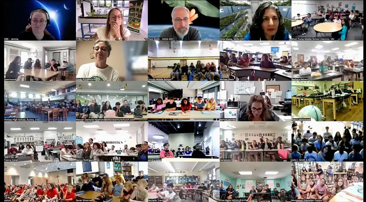 The live chat connected classrooms with Dr. Gioia Massa and Trent M. Smith, senior leaders of NASA Kennedy Space Center's Space Crop Production team. For the past decade, Growing Beyond Earth — a program run by Fairchild Tropical Botanic Garden in Miami — has been channeling real NASA research directly into schools, letting students test how different crops perform under spacecraft conditions.