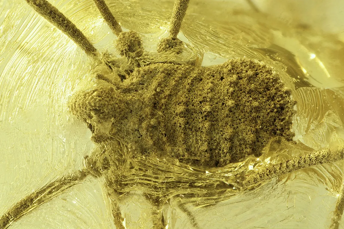 A team of researchers has identified a new species of harvestman, a type of arachnid, preserved in 35-million-year-old amber. This discovery shows that extinct arachnid groups once lived in Europe. It also expands the known variety of species found in amber from this region.