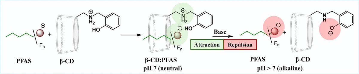 Turns out, donut-shaped sugar molecules are pretty good at cuffing PFAS. Scientists already knew this, but the problem was getting the chemicals out of the sugar traps for disposal, and then reusing the traps themselves. Imagine catching a bunch of tiny, invisible bad guys, but then realizing your handcuffs are single-use. Not ideal.
