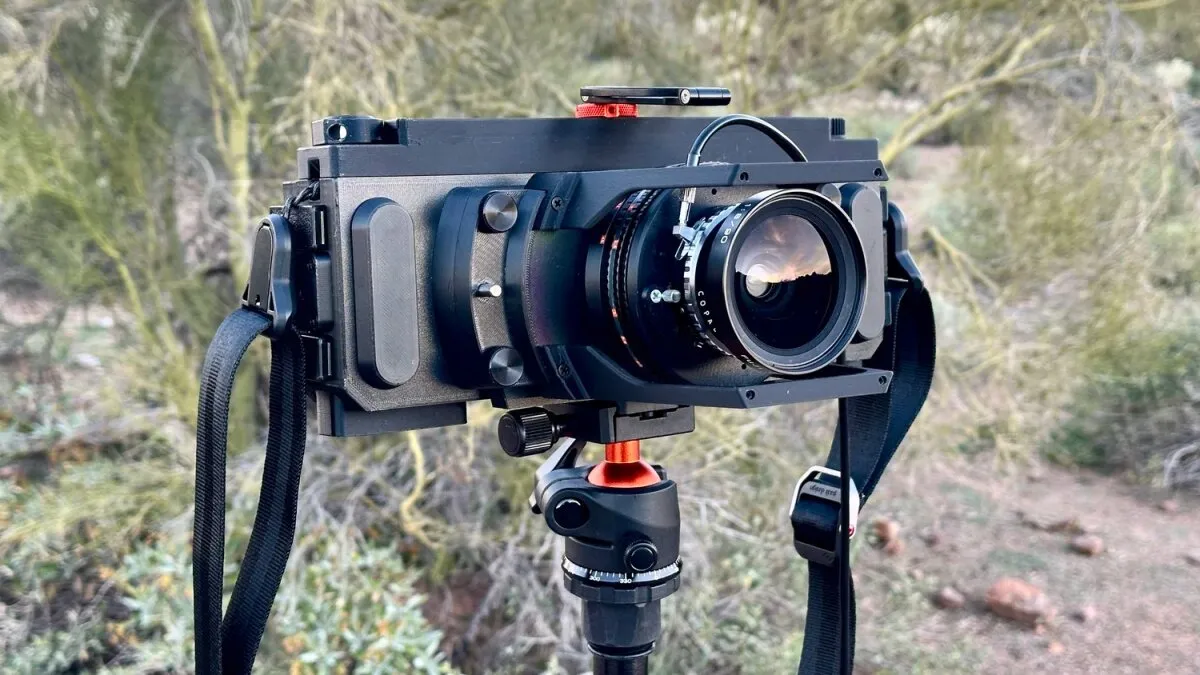 The VZ-6617 is currently on Kickstarter. A pledge of $549 gets a fully assembled camera body and lens cone. It's compatible with 90mm lenses from brands like Schneider Kreuznach, Nikon, Nikkor-SW, or Rodenstock. Delivery is expected in August.