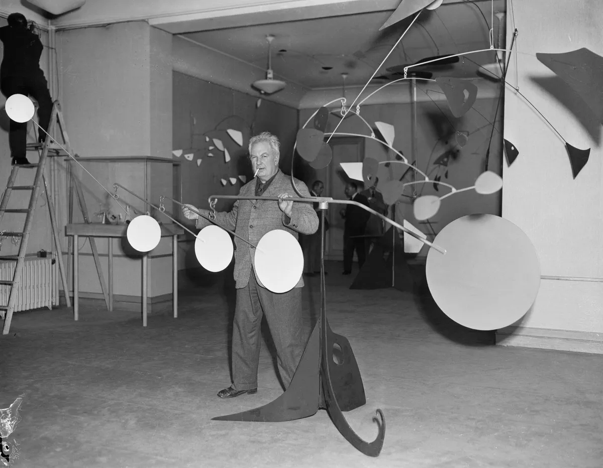 In 1931, artist Marcel Duchamp called Calder's moving abstract works "mobiles." Around the same time, artist Jean Arp named his stationary pieces "stabiles." Today, Calder is most famous for his mobiles, which move with natural air currents. Unlike Cirque Calder, they don't need the artist to bring them to life.