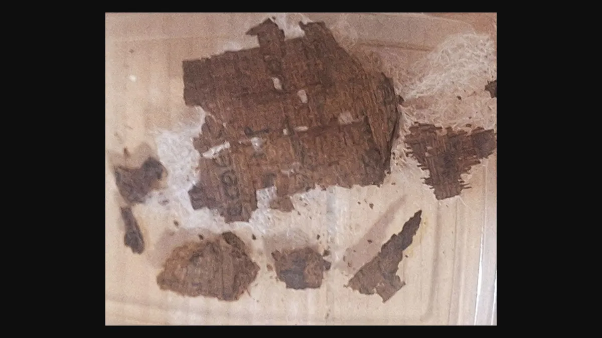 Researchers found this artifact in Tomb 65 of Sector 22 during excavations in late 2025. It is the first known Greek literary text "deliberately incorporated into the mummification process."