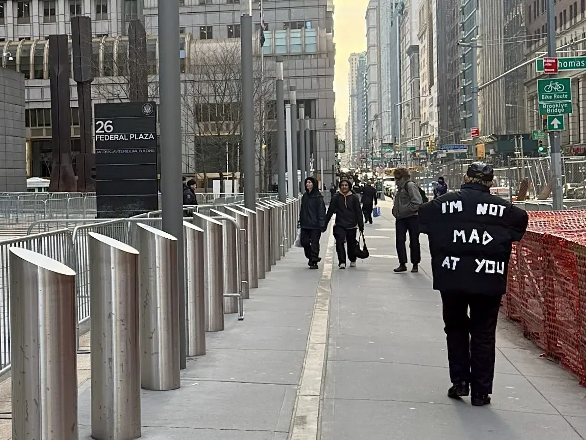 Maria De Victoria stood outside the Jacob K. Javits Federal Building in lower Manhattan at sunrise, wearing a coat printed with words that weren't hers: "I'm not mad at you, dude." They belonged to Renee Nicole Good, a Minneapolis poet and mother whose death at the hands of a federal agent has become a flashpoint in the escalating conflict between immigrant communities and ICE enforcement.