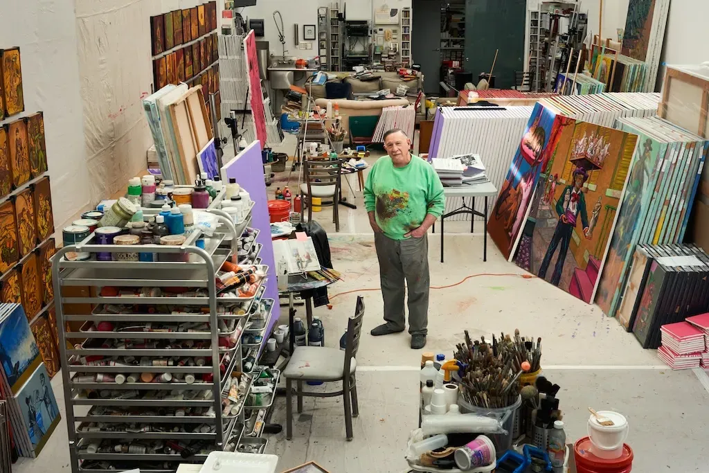 But how does an artist know when a painting is done? For Rand, it’s not about perfection or a final flourish. He points to a half-finished canvas: a street vendor, two kids, a fiery red sunset. "You know what the most important part of this painting is?" he asks, gesturing to where a building meets that crimson sky. "This, right here."