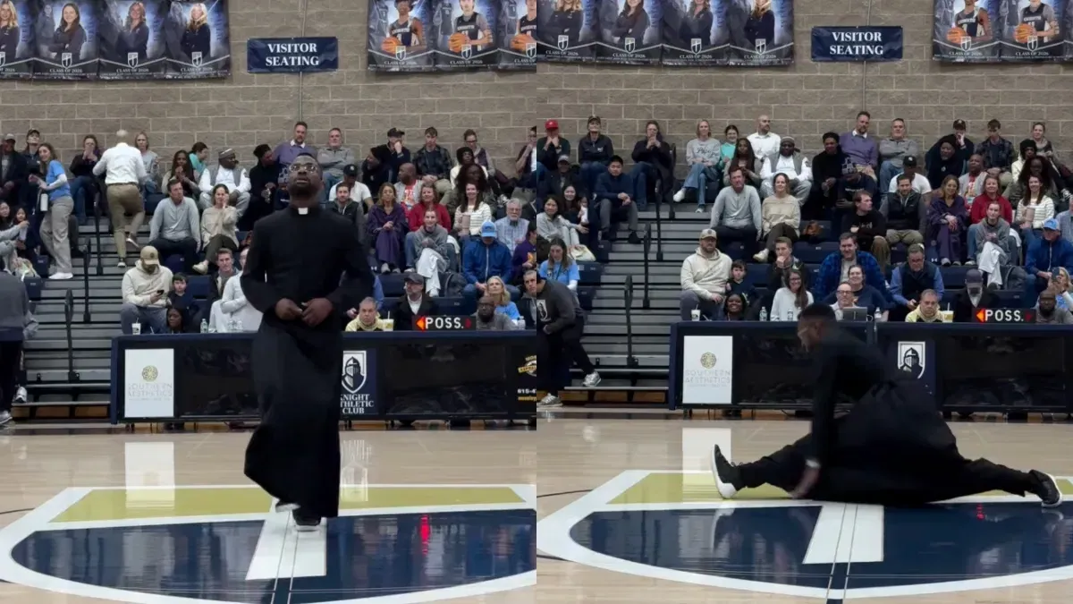 The moment landed differently than your typical halftime entertainment. Here's a priest, in full collar, nailing choreography that requires both physical commitment and a willingness to look ridiculous in front of a gym full of teenagers. One fan captured the vibe perfectly: "Before he was a priest, he was a millennial. Amen."