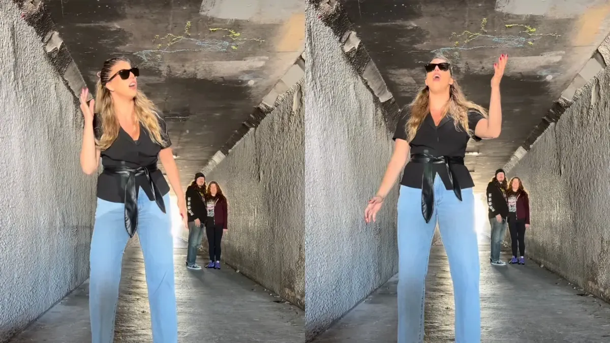 Ortal was mid-swoon, hitting those iconic power notes, when a couple strolling through the park paused behind her. They weren't just being polite; they were captivated. And Ortal, ever the savvy performer, kept her camera rolling.