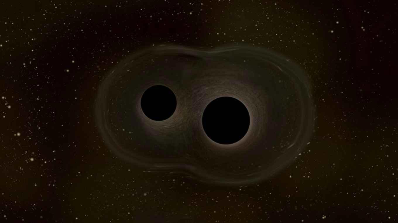 As two black holes orbit each other and merge, they emit gravitational waves that can be detected with instruments on Earth. By studying the detailed shape of these waves, scientists can probe the environment surrounding black holes and, in the future, learn more about the distribution and fundamental nature of dark matter. Credit: ESA