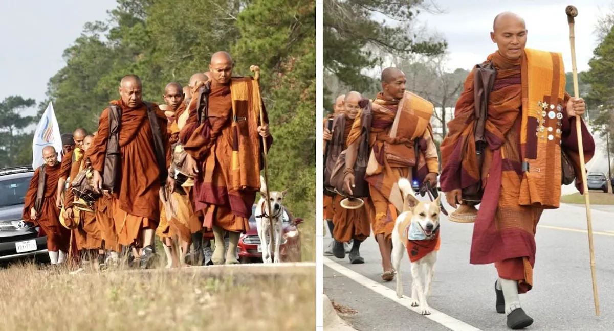 Nineteen Buddhist monks set out from Fort Worth, Texas in October with an unlikely companion: Aloka, a rescue dog who'd already walked across India spreading messages of unity. Now they're heading to Washington, D.C., one deliberate step at a time.