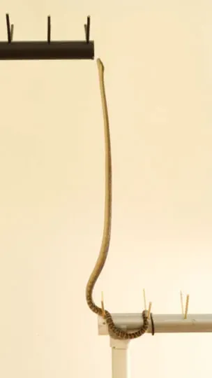 The snakes started on the lower pipe and tried to reach the higher one. Researchers slowly increased the vertical distance between the pipes. They recorded videos of the snakes climbing.