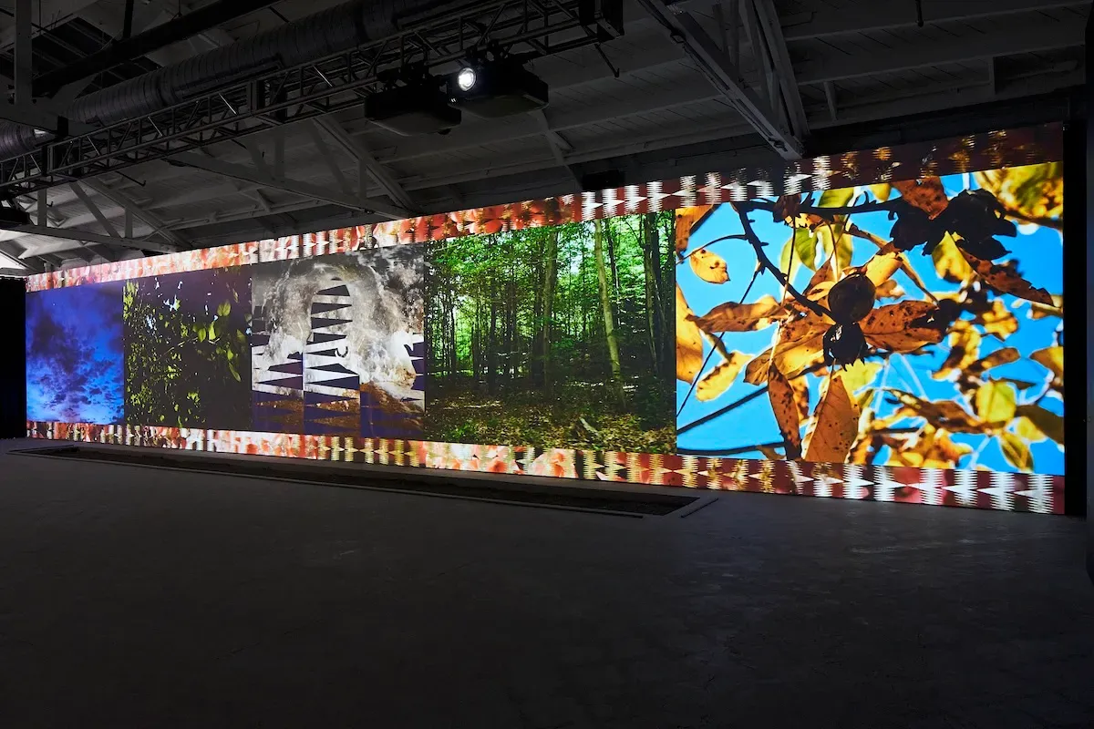 The 433-foot installation goes live on February 2, timed with Super Bowl LX festivities. Gibson adapted the work from his 2022 video installation "THIS BURNING WORLD," which premiered at the Institute of Contemporary Art San Francisco. The new piece weaves together still images from that original work—footage captured in upstate New York and the Bay Area—into a visual meditation on what Gibson calls "the precarity of humanity's relationship to the natural world."