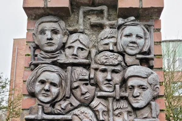 Start Your News DetoxBut some stories refuse to be buried. In 2001, local residents decided these children would not be forgotten. They commissioned Russian artist Leonid Mogilevski to create a memorial for Roman-Zeller-Platz. It’s a bronze relief on a brick pillar, featuring the individual faces of the twenty victims, their names etched below.