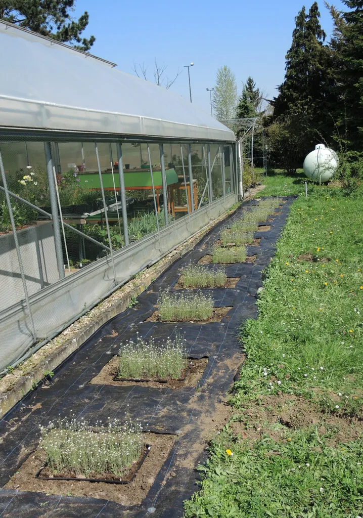 Healthy, flowering plots of Arabidopsis growing in Würzburg, Germany. Image: GrENE network consortium