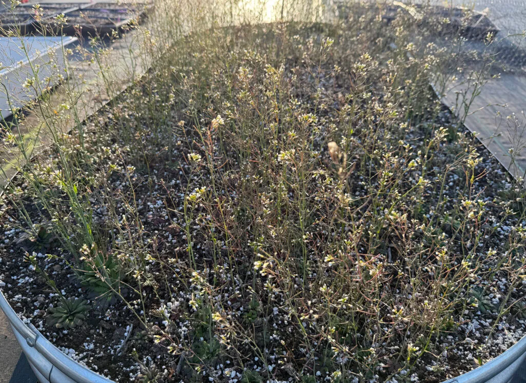 Arabidopsis growing at high density in new experiments at UC Berkeley’s Gill Tract in Albany. Image: Moisés Expósito-Alonso/UC Berkeley