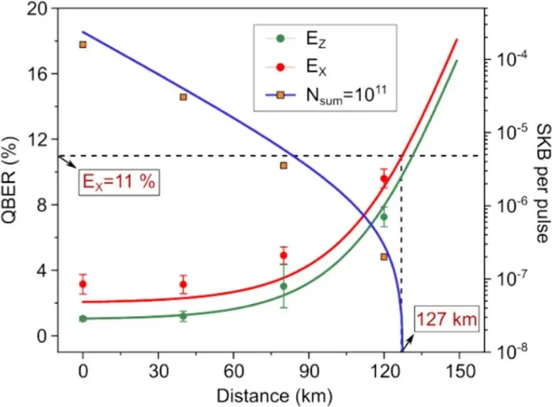 The system achieved the highest secure key rate ever for this type of QKD using quantum dots. It generated about 15 bits per second. This is enough to encrypt things like text messages. Even after traveling 120 km, the error rate was kept below 11%.