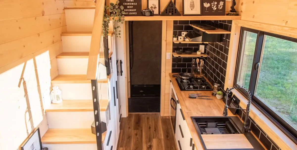 The Scandi Inn is a tiny house that draws inspiration from Scandinavian design. It features an attractive wooden interior and a minimalist style. The home measures 270 square feet (25 square meters) and focuses on smart, space-saving ideas.