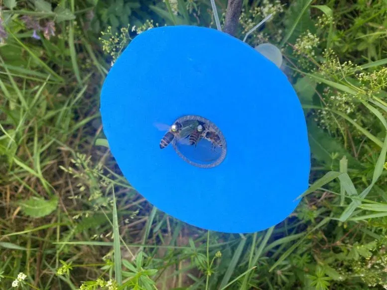 Honeybees equipped with small reflector markers enable precise tracking of their flight paths—the results show that individual bees navigate to known destinations much more accurately than the directional information provided by the waggle dance would suggest. Credit: Andrew Straw