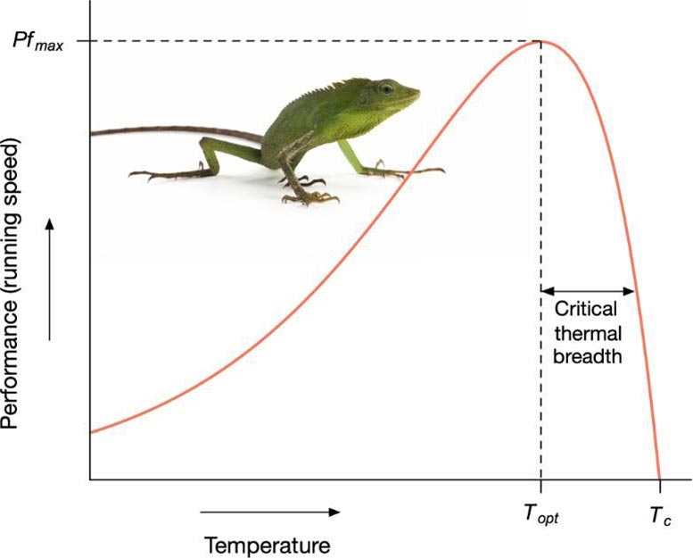 "Whatever the species, it simply must have a smaller temperature range at which life is viable once temperatures shift above the optimum," Jackson says. In other words, there's no escape hatch. Evolution can adjust which temperatures a species prefers, but it cannot break the fundamental rule that performance crashes once you exceed that preference.