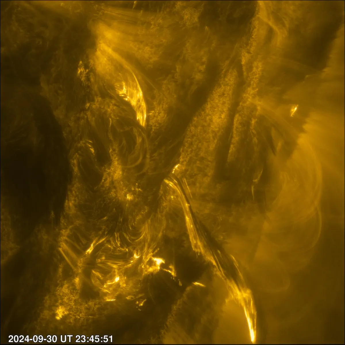 Start Your News DetoxThen Solar Orbiter's Extreme Ultraviolet Imager (EUI) caught it happening in real time. Starting at 23:06 Universal Time, about 40 minutes before the flare peaked, the spacecraft watched a dark arch-like filament of twisted magnetic fields. New magnetic strands appeared in nearly every image frame — every two seconds or less. Each one remained magnetically contained, twisting like coiled rope. As more strands formed, the region became unstable. The twisted structures began breaking and reconnecting, triggering a spreading cascade of further disruptions. Each disruption released more energy. The process lit up in the images as sudden, increasingly intense bursts of brightness.