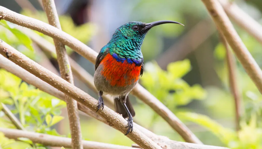 Caption: A greater double-collared sunbird (Cinnyris afer), one of the South African sunbirds studied. Image: Keith Barnes