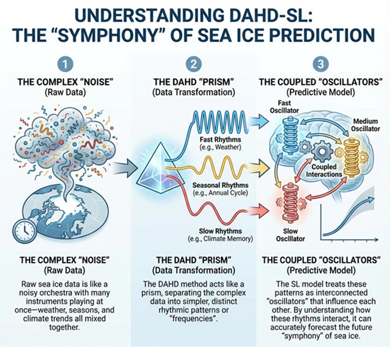 The model works by breaking the Arctic into regions rather than treating it as one uniform system. This matters because ice conditions vary wildly from year to year and place to place. A method that can capture those regional differences while still seeing the pan-Arctic pattern is rare.
