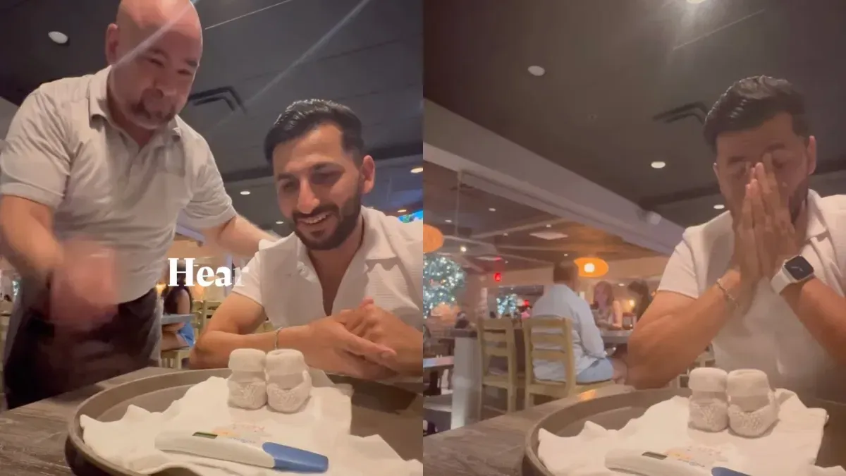 That's exactly what happened to Steven. His wife, Lionella Younus, wanted to tell him she was pregnant in a truly unforgettable way. She planned it all with their waiter.