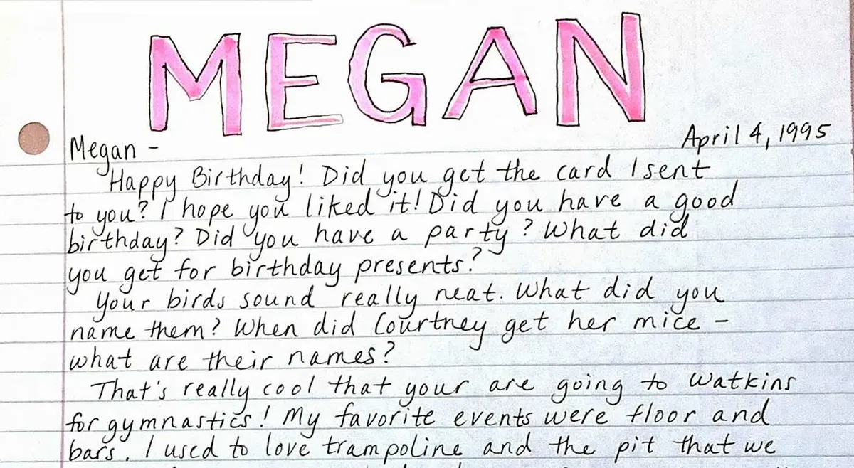 Megan Lewis was a second grader when she started writing letters to Suzanne Koziol, a ninth grader at Fern Hill Elementary School in Pennsylvania. They swapped favorite foods, activities, dreams—the usual pen pal stuff. Then three decades passed, and Lewis forgot about the letters entirely.